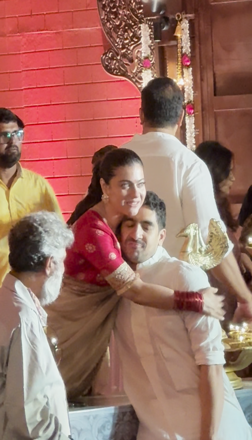 In a touching clip, sisters Kajol, Rani, and Tanisha were seen embracing each other, visibly emotional. Kajol also shared a heartfelt hug with Ayan before posing together for photographs.