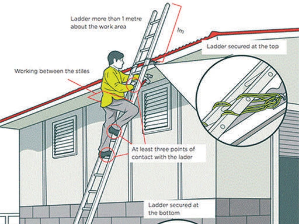•Preventing falls from height: These involve loss of balance on an unstable ladder or ladder-like support (Step Stools or Chairs), or elevated structure (Attics, tree houses, roof gutters, balconies, and terraces) with slippery surfaces, or lacking proper safety supports or railings. Position ladders on firm ground, following a 4:1 ratio (1 foot away from the wall for every 4 feet of height), and never stand on the top two rungs. Avoid reaching too far sideways on a ladder.