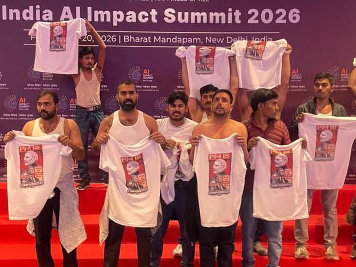 The incident occurred on Friday inside the exhibition area of the AI Impact Summit at Bharat Mandapam, a venue hosting international delegates, policymakers, and business leaders. According to police, several individuals walked through the hall holding T-shirts with slogans critical of the government and the India-US trade deal.