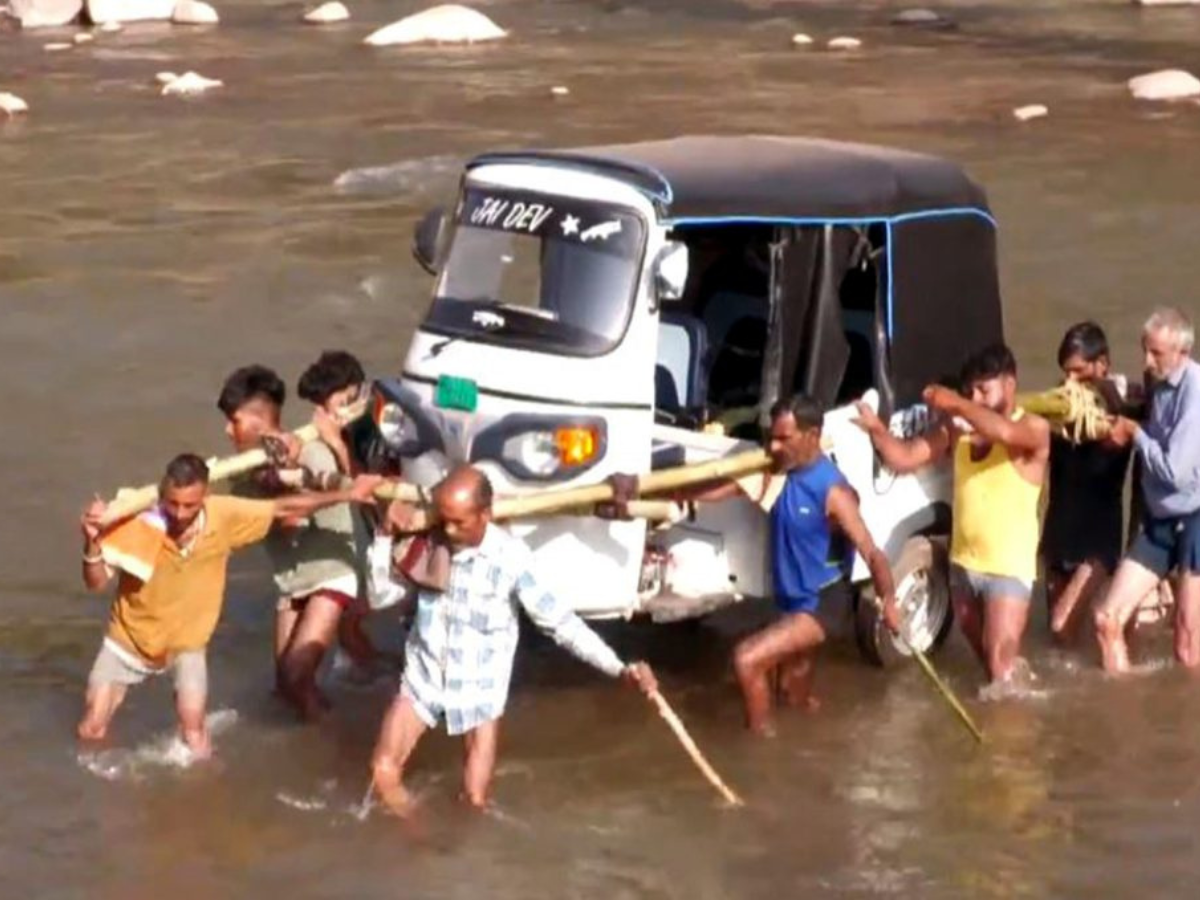 Visuals from the area showed villagers carrying an auto rickshaw on their shoulders to navigate the waterway, as there are now no means of transportation available. Locals said the bridge, which had stood for nearly a decade, was destroyed after incessant rains triggered flash flooding.