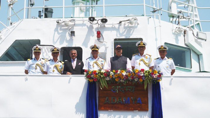 Commissioning Ceremony.@IndiaCoastGuard Ship Adamya, first in the series of 08 #FPVs, was commissioned at #Paradip Port today by Shri Satyajit Mohanty, IRS, Joint Secretary (AF & Policy), @DefenceMinIndia, in the presence of senior dignitaries & officials.