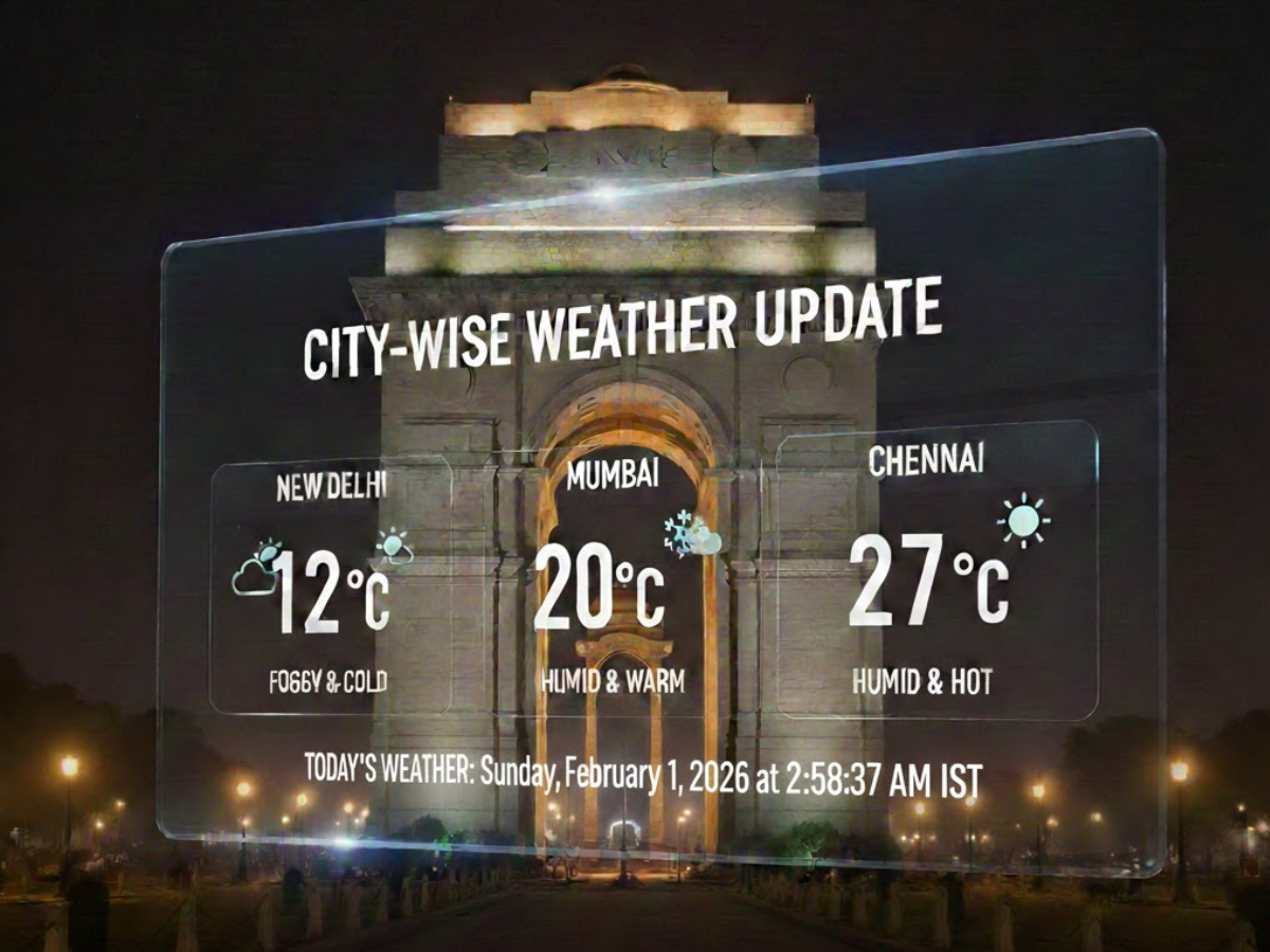 City-Wise Weather Update: India’s weather today reflects a clear seasonal transition across regions while north India continues to feel the tail-end of winter with chilly mornings, western and southern states are steadily warming up. From sub-zero temperatures in Kashmir to near-summer conditions in Gujarat and Telangana, weather patterns vary sharply, influencing travel, health and daily routines.