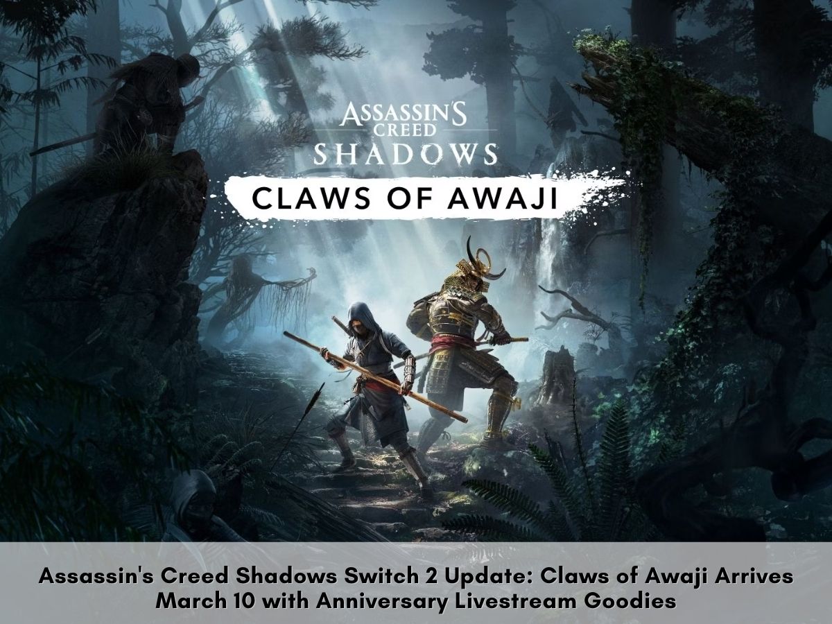 Ubisoft sets the Claws of Awaji expansion for Assassin’s Creed Shadows to launch on Nintendo Switch 2 March 10, aligning its content with PC, PS5, and Xbox Series X/S versions. The studio also plans a major first anniversary livestream March 20 packed with giveaways, following the recent Title Update adding long-requested Manual Jump to Advanced Parkour.