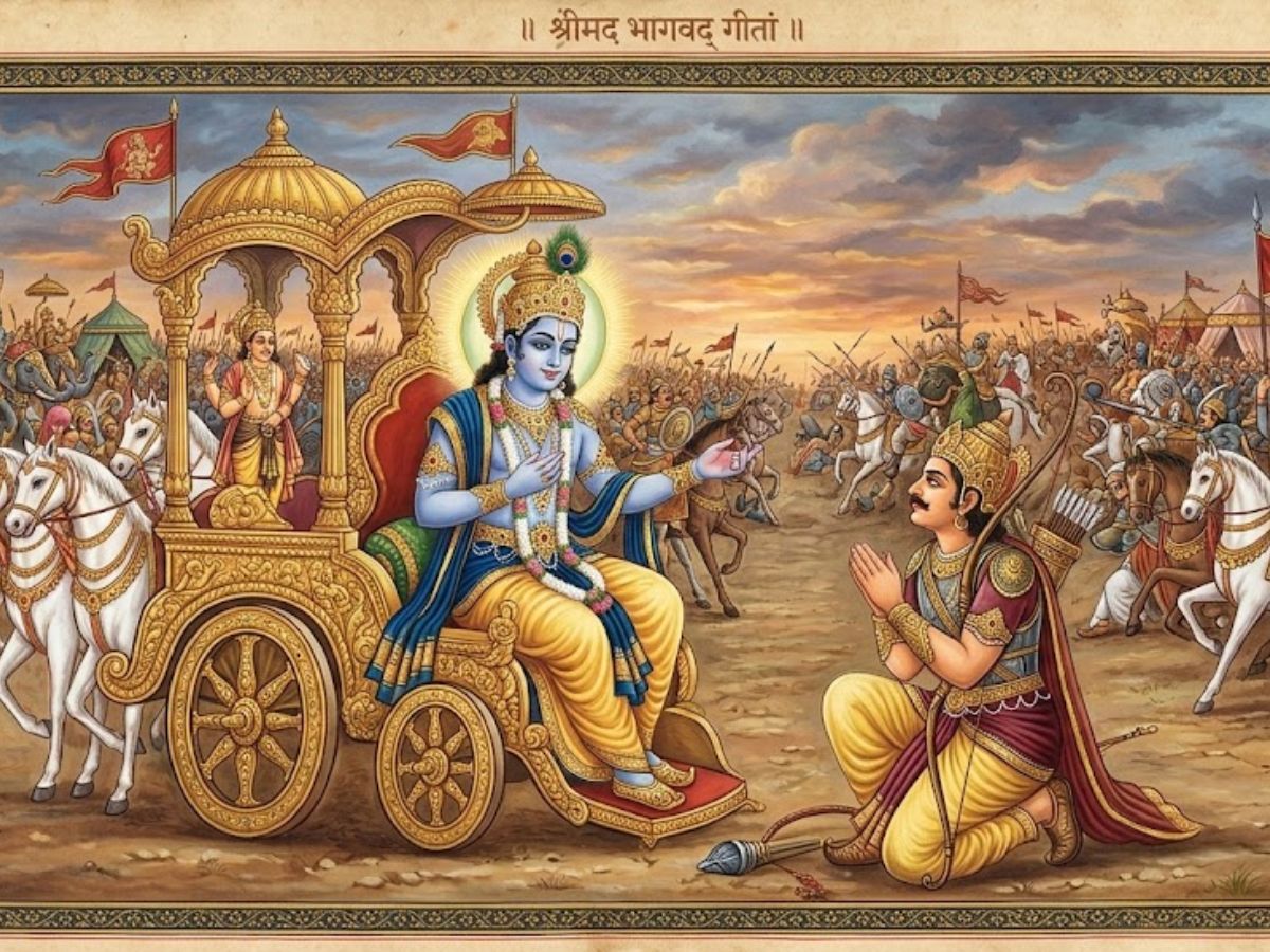 Bhagavad Gita Shlokas: The Shrimad Bhagavad Gita is regarded as one of the greatest spiritual texts in the world. It is not only widely read but also frequently recited and discussed across generations. Many believe that every aspect of life can be understood and explained through the teachings of the Gita. In India’s Sanatan tradition, the Gita is not just worshipped but also followed as a practical guide to live a meaningful life.