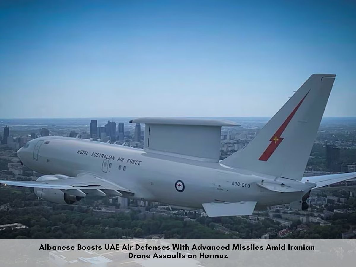 Australia Arms UAE With Air-to-Air Missiles: Australia deploys E-7A spy plane over UAE, sends air-to-air missiles. No Iran ground troops. Defensive aid protects 115K citizens amid Hormuz shutdown.