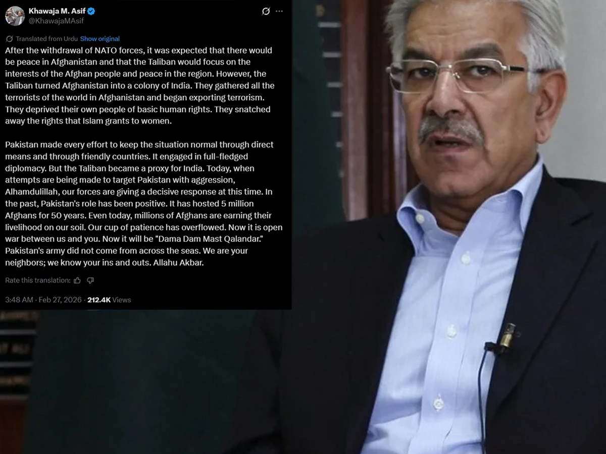 In his post, Khawaja Asif sharply criticised the Taliban rulers. He said that after the Nato withdrawal, Pakistan had hoped for peace and stability in Afghanistan. Instead, he claimed the Taliban had turned the country into “a colony of India,” suggesting Kabul had shifted regional dynamics and security threats unfavorably.