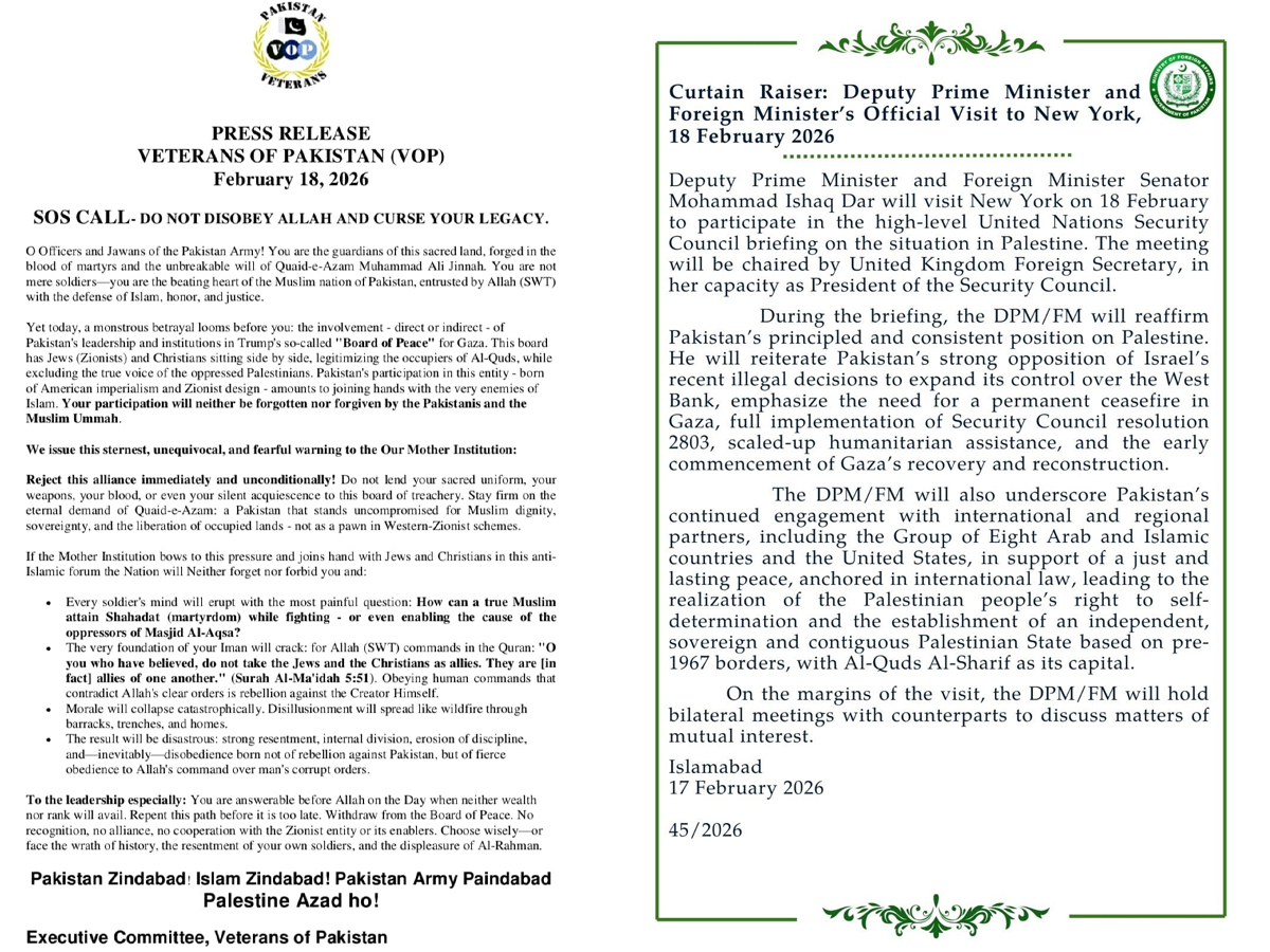 The Veterans of Pakistan (VOP), a group representing retired military officers and soldiers, issued an alarming call for the country’s leadership to refuse involvement in the U.S.-backed initiative. The “Board of Peace” was intended to address the ongoing conflict in Gaza and the broader Middle East, but the VOP claimed that its structure, which included both Jews (Zionists) and Christians as participants, undermined the Palestinian cause. Their statement portrayed the forum as a pawn in a larger American and Zionist agenda that they argued could be seen as a betrayal of Pakistan’s values and long-standing support for Palestine.
